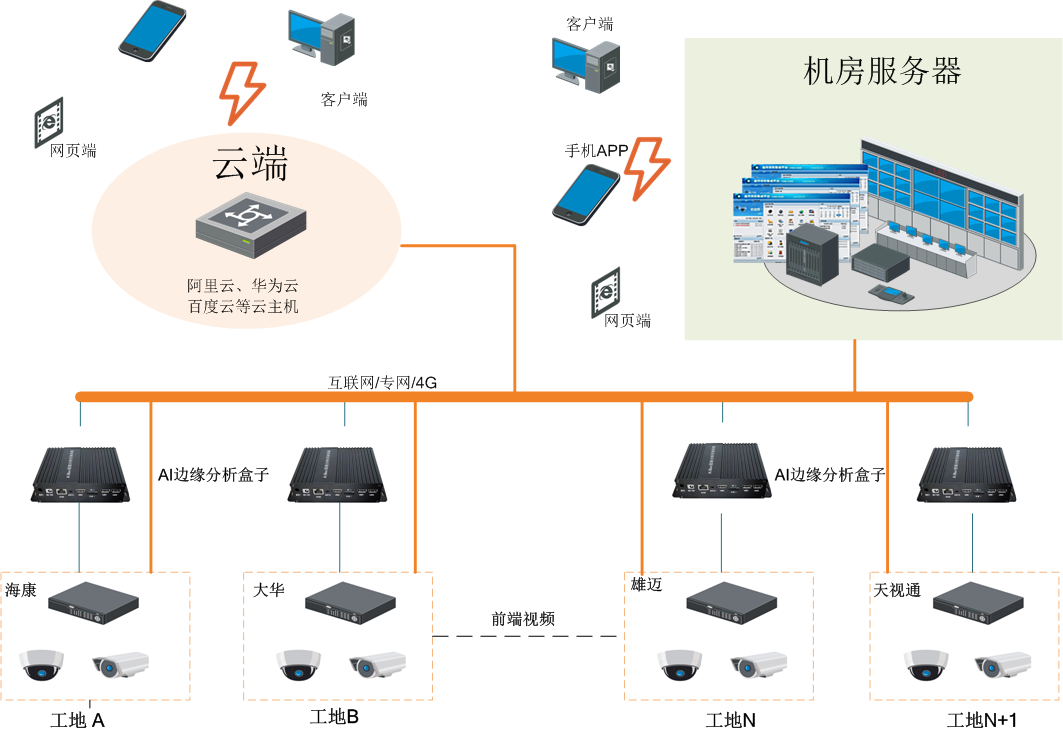 近年来随着我国基建行业的快速发展,产业规模的不断扩大,建筑工地作为一个安全事故多发的高危地,具有施工现场管理人员复杂、环境杂乱、多工种交叉作业等弊端,且呈现管理粗放、施工地分散全国甚至全世界等特性,建筑工程建设70%左右的工作都发生在施工现场,施工阶段的现场管理对工程成本、进度、质量及安全等至关重要。这就使工地建设可视化,信息数据化,监管有效化变得日趋必要和关键。各种智慧工地的视频监控平台的建设也如雨后春笋般越来越多起来。然而各工地所使用的的监控系统各不相同,彼此之间无法做到互联互通,不方便上级监管部门进行统一查看和监管。
