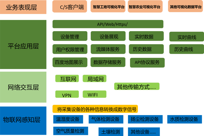 一个完整的Iot物联网平台,通常可分为物联网感知层、网络层、平台应用层、业务表现层四大层次。其中,物联网平台是将感知层的各类设备连接到场景应用的关键“桥梁”,负责提供物联网解决方案研发过程中所需的通用功能及基础设施,从而加速解决方案的落地。