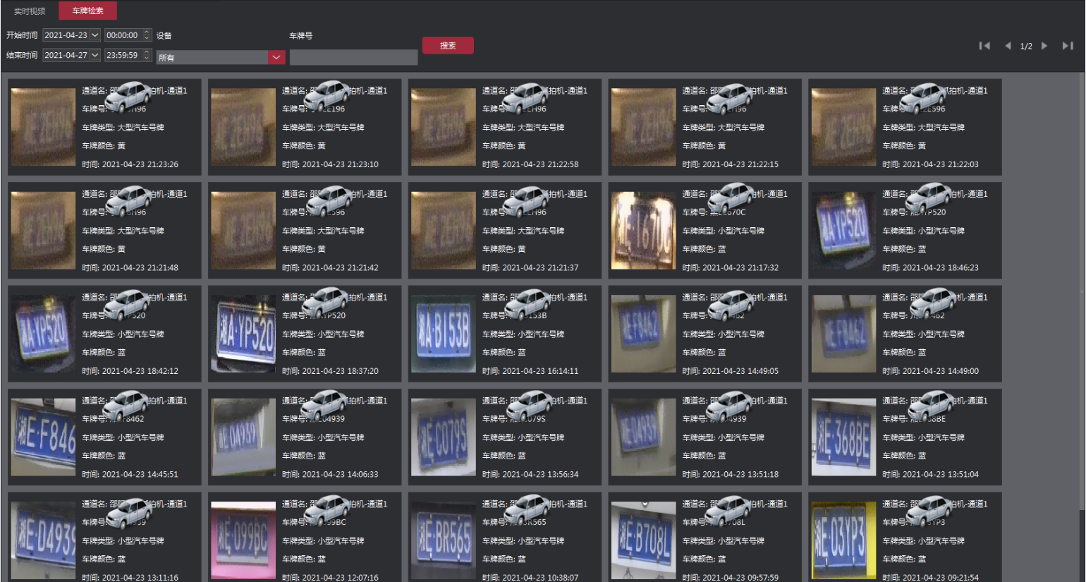 支持前端设备通过1400协议的方式,把前端设备中抓拍的车牌图片传输过来进行展示,存储,检索等功能
